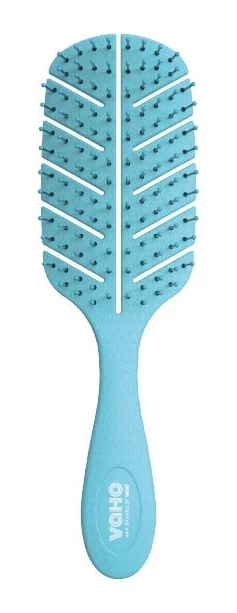 - A rugalmas, duplán ívelt fej ergonomikus kialakítása jobban alkalmazkodik a fejbőrhöz, masszírozza azt, és lehetővé teszi, hogy a kefe több hajat érjen el és kényelmesebben csússzon át rajta